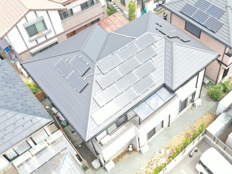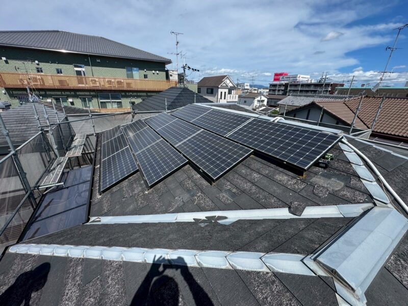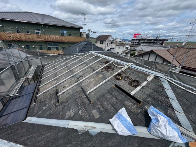 順番は太陽光~屋根カバー~外壁塗装の順で進めていきます。パネル取り外し