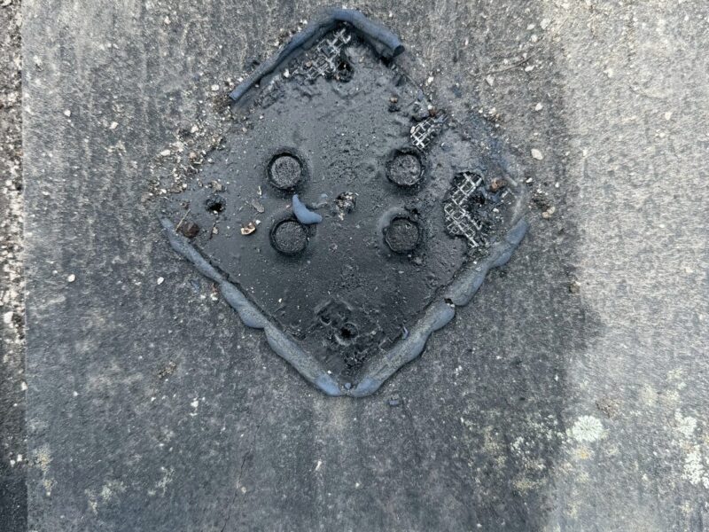 こんな感じで屋根材に穴が空けてあります。金具跡補修