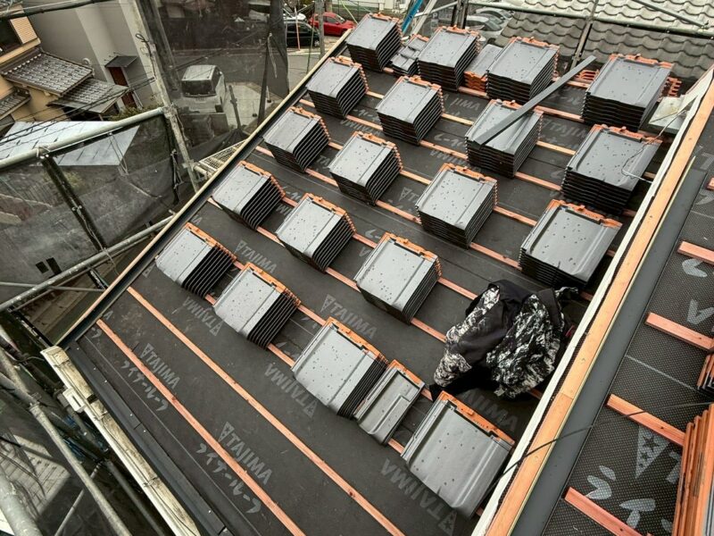 これから頑張ってもらう新しい瓦を施工していきます。