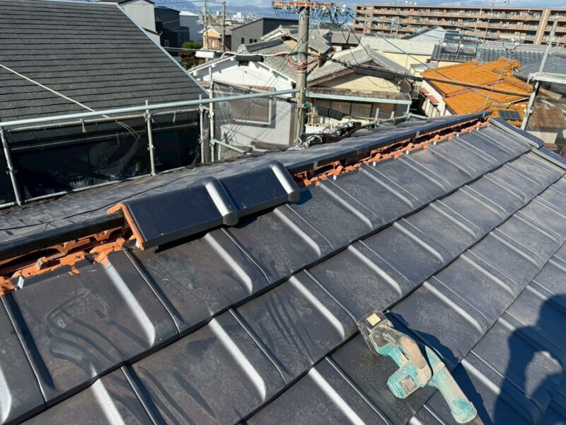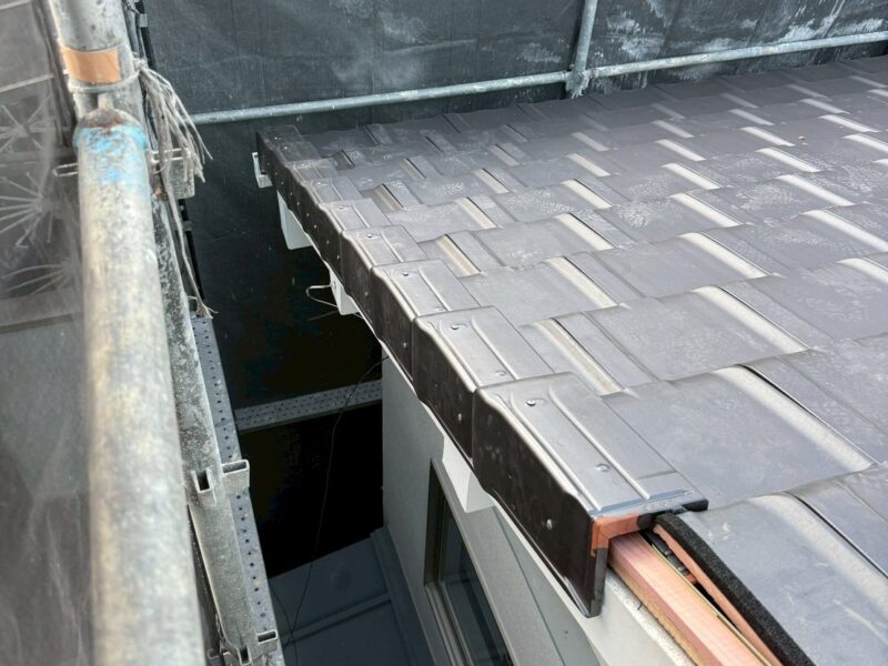 ケラバ等の水切りを設置し新しい瓦が屋根上に登場しました。