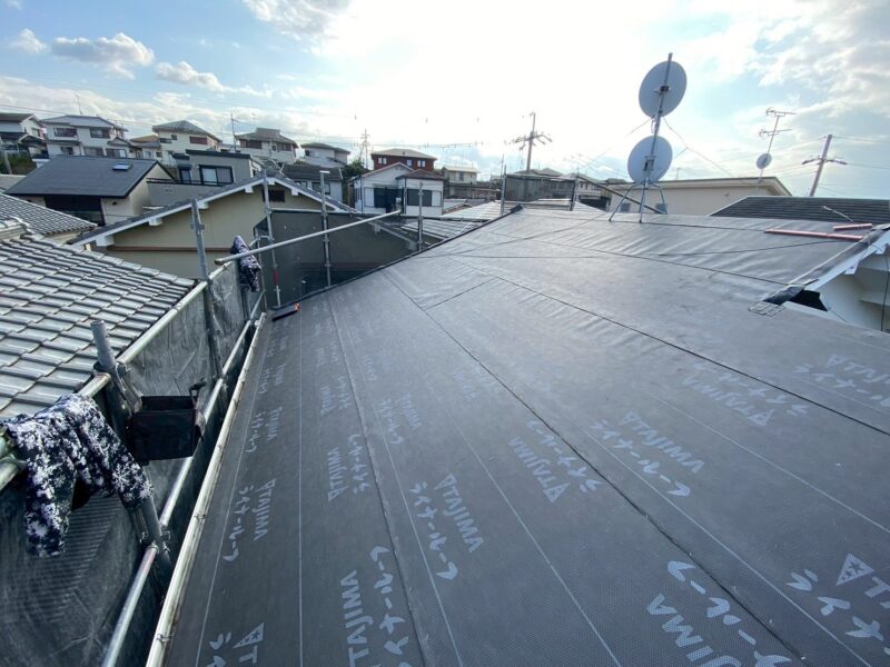 さらに防水紙を貼ります。耐久性の高い防水紙を使用しました。