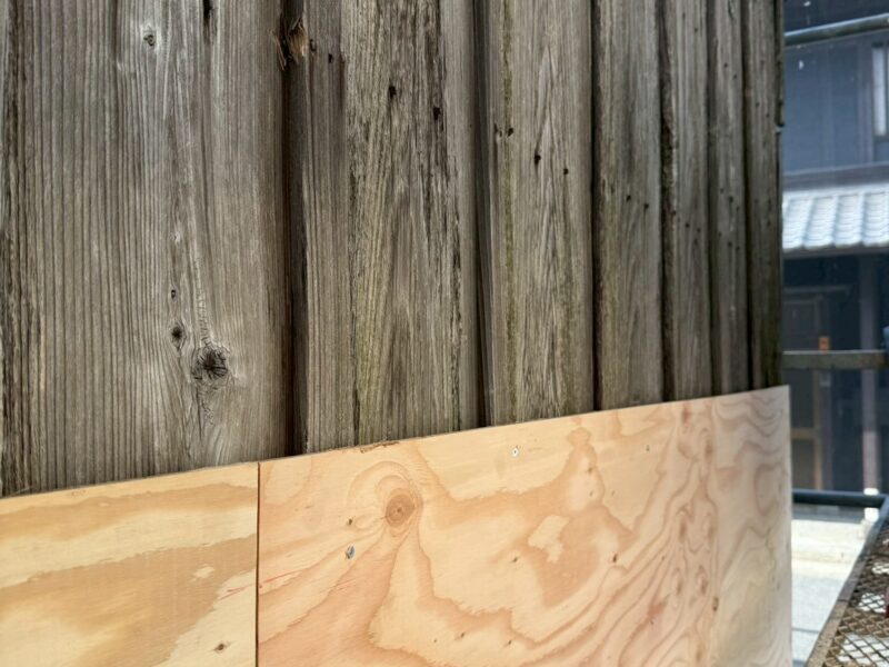 コンパネを貼ることで同時に漆喰を押さえつけられますので一石二鳥です。