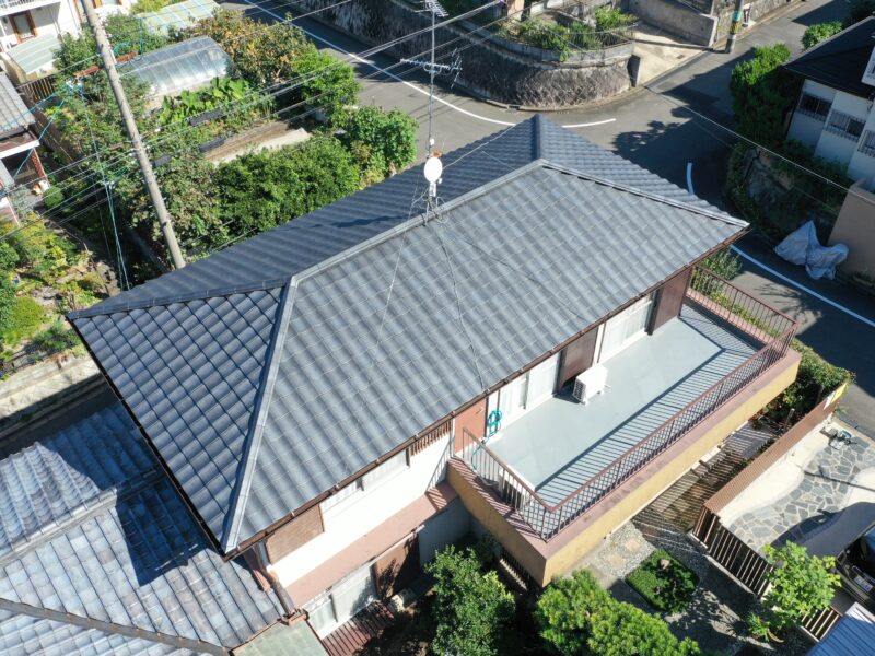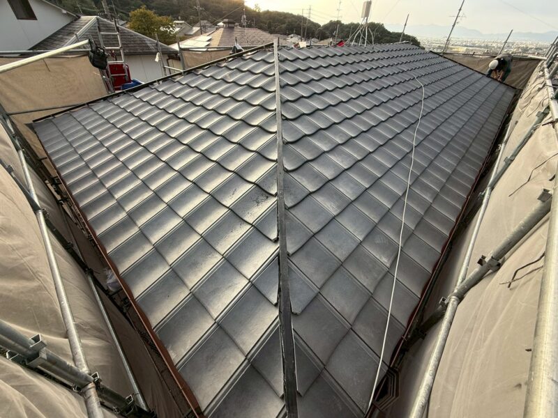 屋根の葺き替えが完了しました。雨漏れも止まりしっかり軽量化できてます。弊社にご依頼いただきありがとうございました。