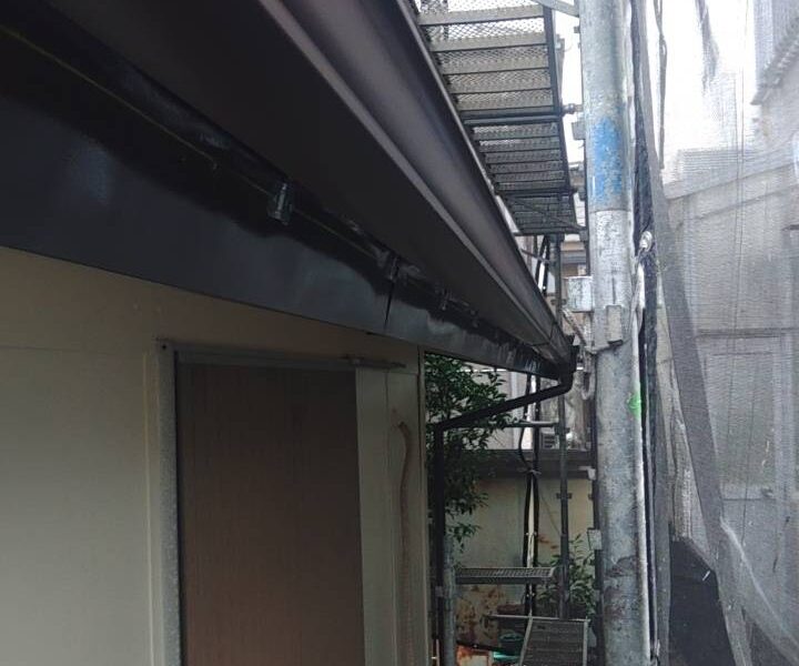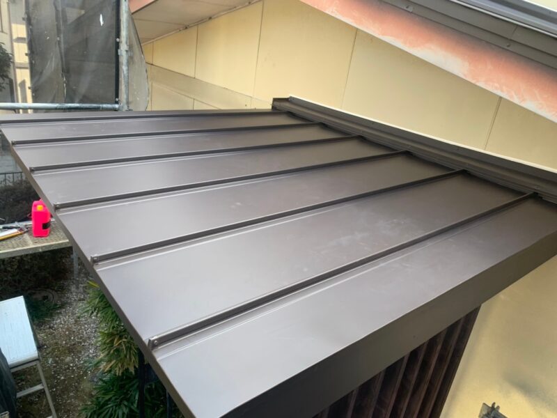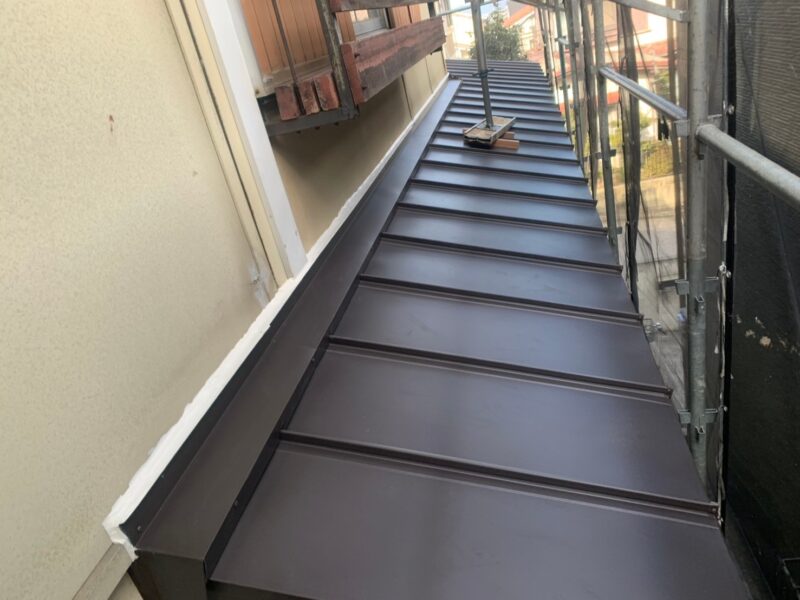 廻りの木材も一緒に板金材で巻きました。同時に唐草の役目も果たします。
