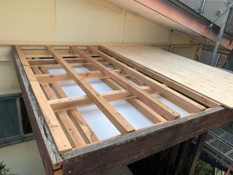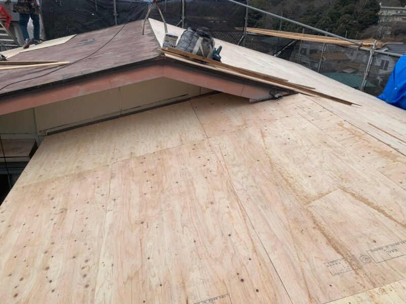 垂木が弱っていたので補強し野地板を貼っていきます。。