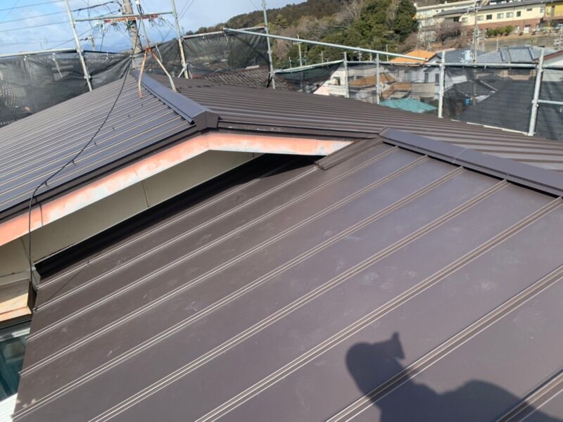 棟下地の木材が水に触れないように板金材でバリアします。エプロン面戸と言います。